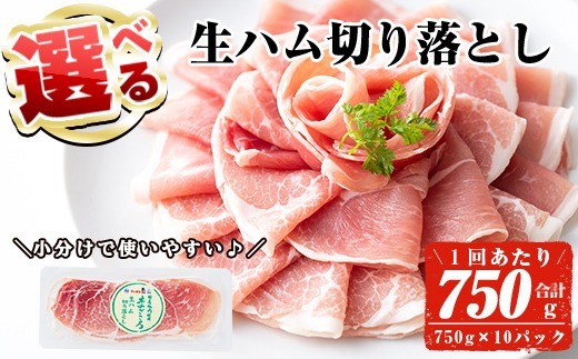 [発送時期・回数が選べる・2026年2月中に発送予定]国産豚生ハム切り落とし75g×10P(計750g) [ナンチク]A302-02-v01