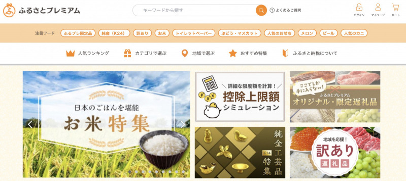 ふるさとプレミアムはふるさと納税サイトのうちの一つで、日本中のさまざまな自治体の返礼品の情報が掲載されており、そのまま寄付をすることができるポータルサイトです。